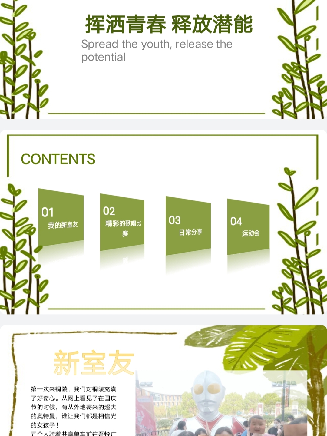 此次活动中,同学们积极的上传自己的青春PPT,通过运用所学的知识,用PPT的方式简单明了体现出在校园生活的点点滴滴,有美食、风景、等等。从每个同学所做出来的青春PPT都能感受到大学生活的多姿多彩,非常的快乐。
