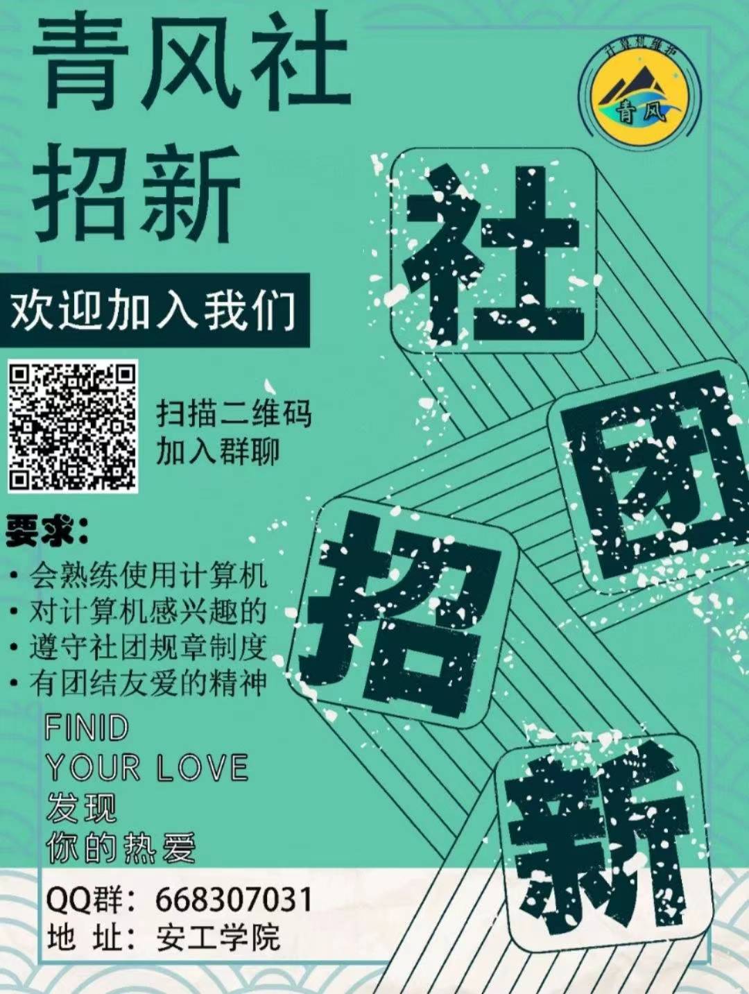 2022年 9月18日,在线上举办了安工学院青风维护社团22秋纳新海报活动,活动由王老师指导并监督。此次活动共有74名同学参加。