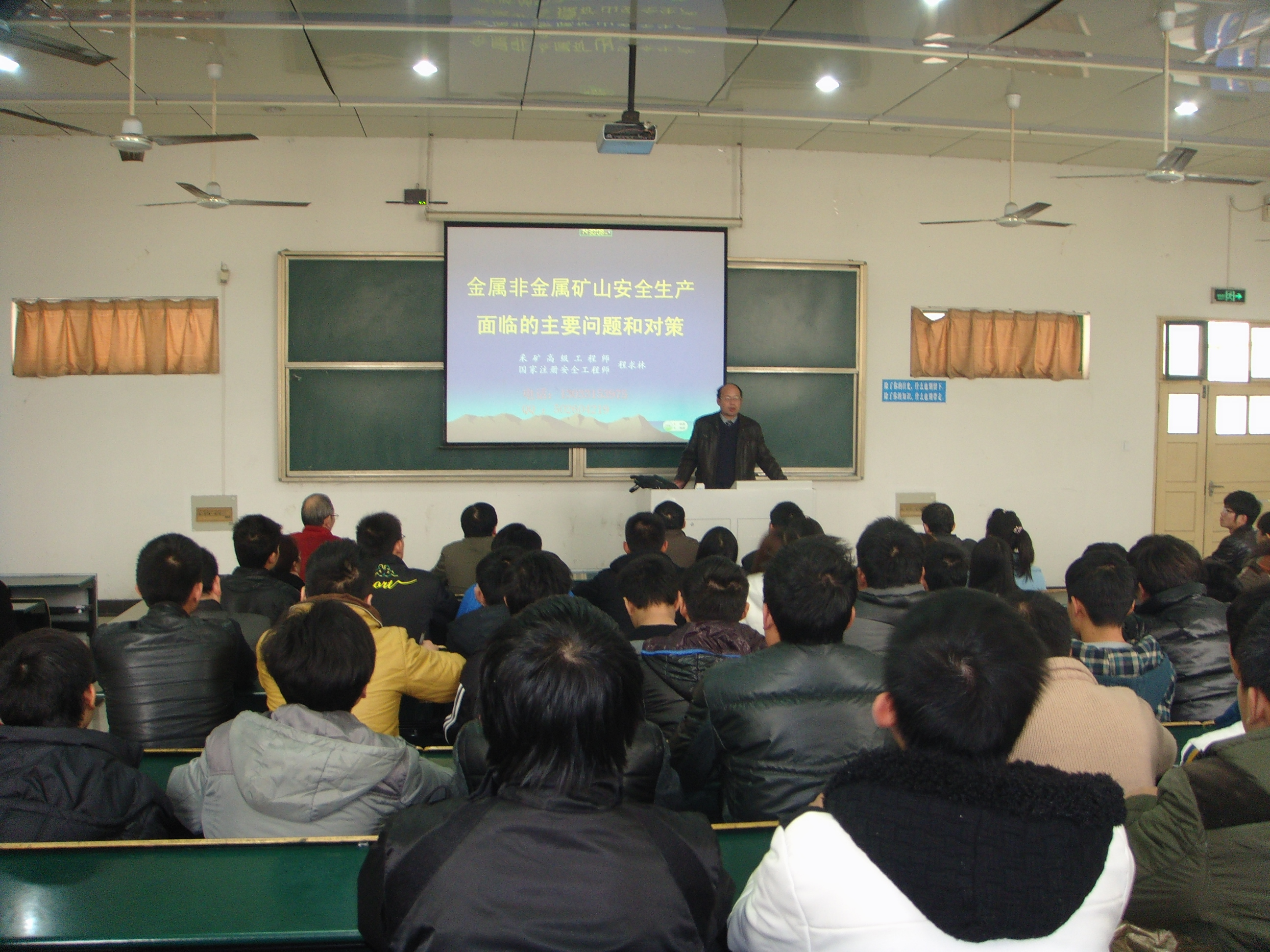 为加强学风建设,开阔同学们的专业视野,12月6日下午,我院资源开发系邀请了冬瓜山铜矿安全高级工程师程求林来我校为采矿、选矿专业学生做矿山安全技术讲座。