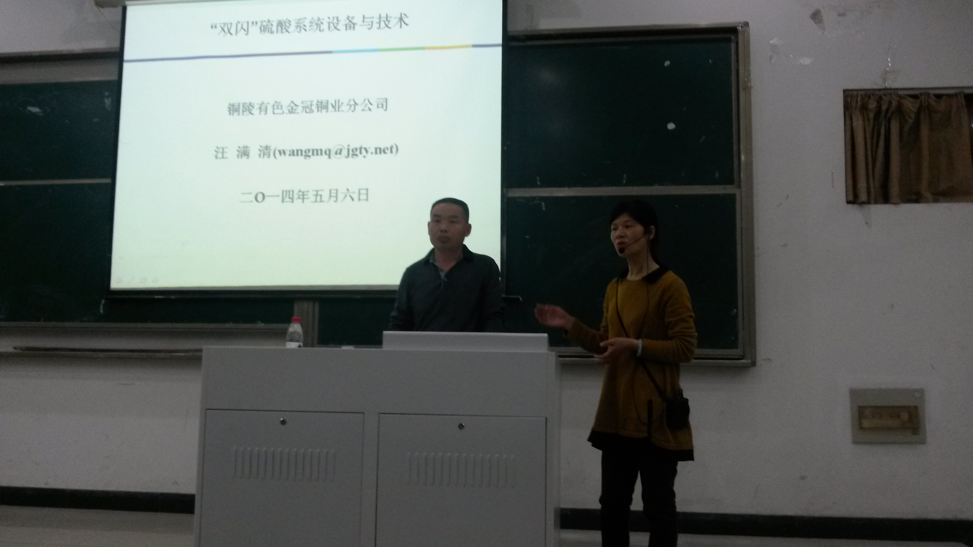 2014年5月6日19时在学院阶102教室,铜陵有色金冠铜业分公司(习惯称之“双闪”)硫酸车间主任高级工程师汪满清给同学们带来了一次精彩的讲座。该讲座原定于2014年5月16日,因双闪即将进行全面停车大修故提前。讲座的内容主要有:“双闪”概况、硫酸生产过程新技术、DCS自动化控制、安全环保、企业管理以及企业对高技能人才要求等。介绍中,同学们知道了双闪拥有:世界上单套铜生产能力最大装置,自主开发了高浓度二氧化硫转化技术(该技术正在申报国家专利),更为先进的自动化联锁控制,5S管理清洁生产,PDCA质量管理等,最后,汪主任以青蛙登塔故事给大家以生活启迪,鼓励大家要以积极、乐观和投入的态度去对待学习和今后的工作,讲座赢得一次又一次热烈的掌声。听取讲座的人员有部分专业老师和12、13级化工、冶金专业学生。