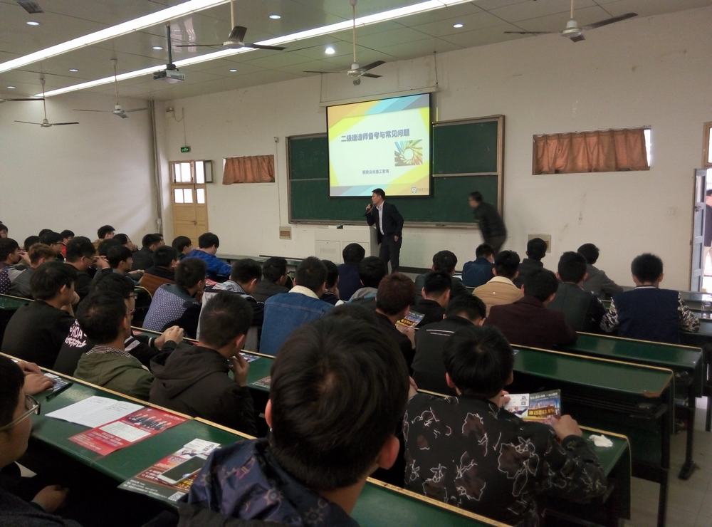 为了提高学生就业素质与能力,帮助学生打通职业上升通道,更好的了解建筑专业相关岗位技能信息,特邀请铜陵启尚教育咨询服务有限公司朱总于11月18日下午2:30,在教学楼202阶梯教室为我校学生举行关于岗位技能证书相关知识的介绍讲座。150多名2015级、2016级建筑工程技术专业、工程造价专业在校生早早地来到学校,聆听了此次讲座。