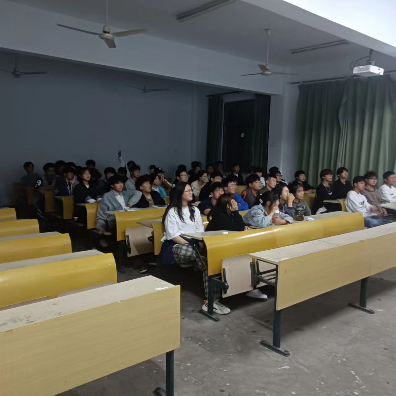 观影开始前,由社团负责人员讲解观影纪律,到达规定时间,活动正式开始。观影期间,同学们积极配合,观影结束后,由该社团负责人进行思想总结,到此活动正式结束。