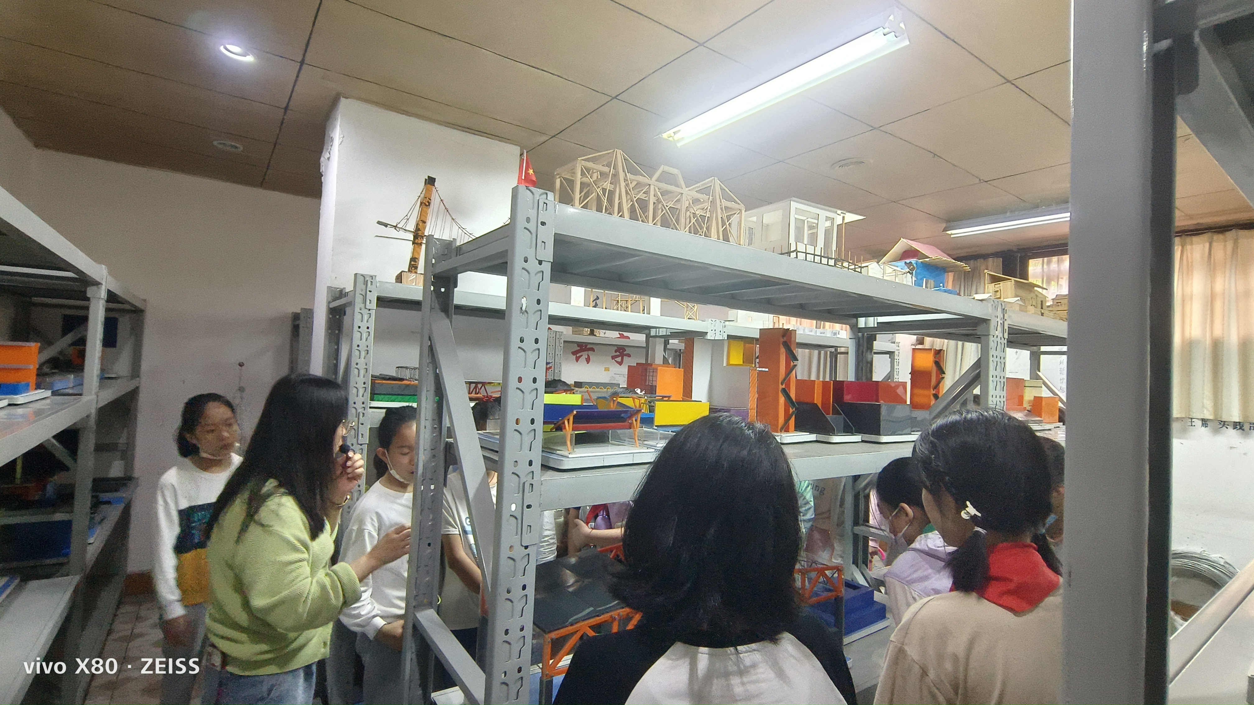 在建筑模型实训室中,姜丽老师介绍了各个建筑结构模型,并普及了抗震小知识。同学们积极互动,热情参与,对模型充满了好奇,尤其是看到建筑剖面图中楼梯模型时,不禁惊叹:原来楼梯的结构是这个样子的!