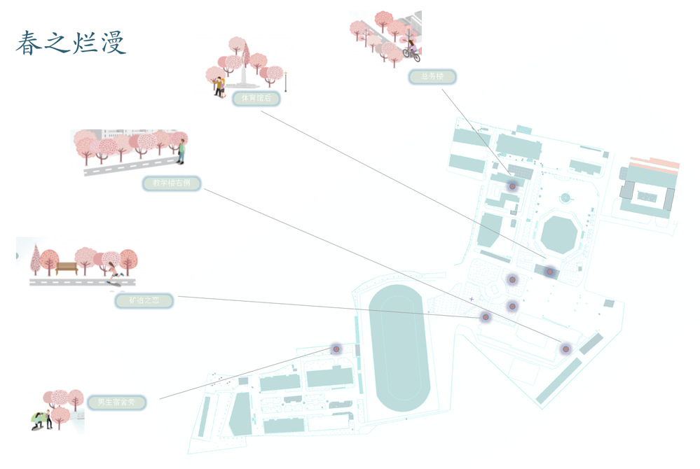 在校园文化建设上,项目以《漫步安工地图集》为实践案例,深入探索校园文化地图集设计。其设计理念独树一帜,借助“耦合文化、场所和景观”的叙事框架,梳理出叙事脉络、叙事载体与叙事线索三大主线。以校园精神为核心,剖析校园文化层积,厘清景观与文化映射关系,运用叙事手段制定地图表达策略。